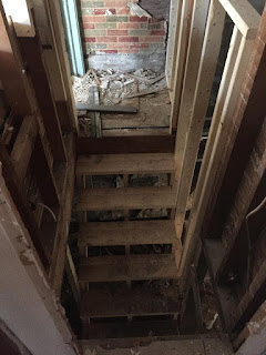 The more significant demolition that needed to be done was the removal of all of the water damaged areas from the master bedroom and 2nd floor bathroom. So pretty much removing EVERYTHING from this area. The 3rd floor horror show of a shower had created a real mess. The crew had to take out everything down to the studs and then shore up the rotten pieces to maintain the structural integrity. I guess that's cool, if you're into not waking up in the middle of the night with the 3rd floor bathroom on your bed.